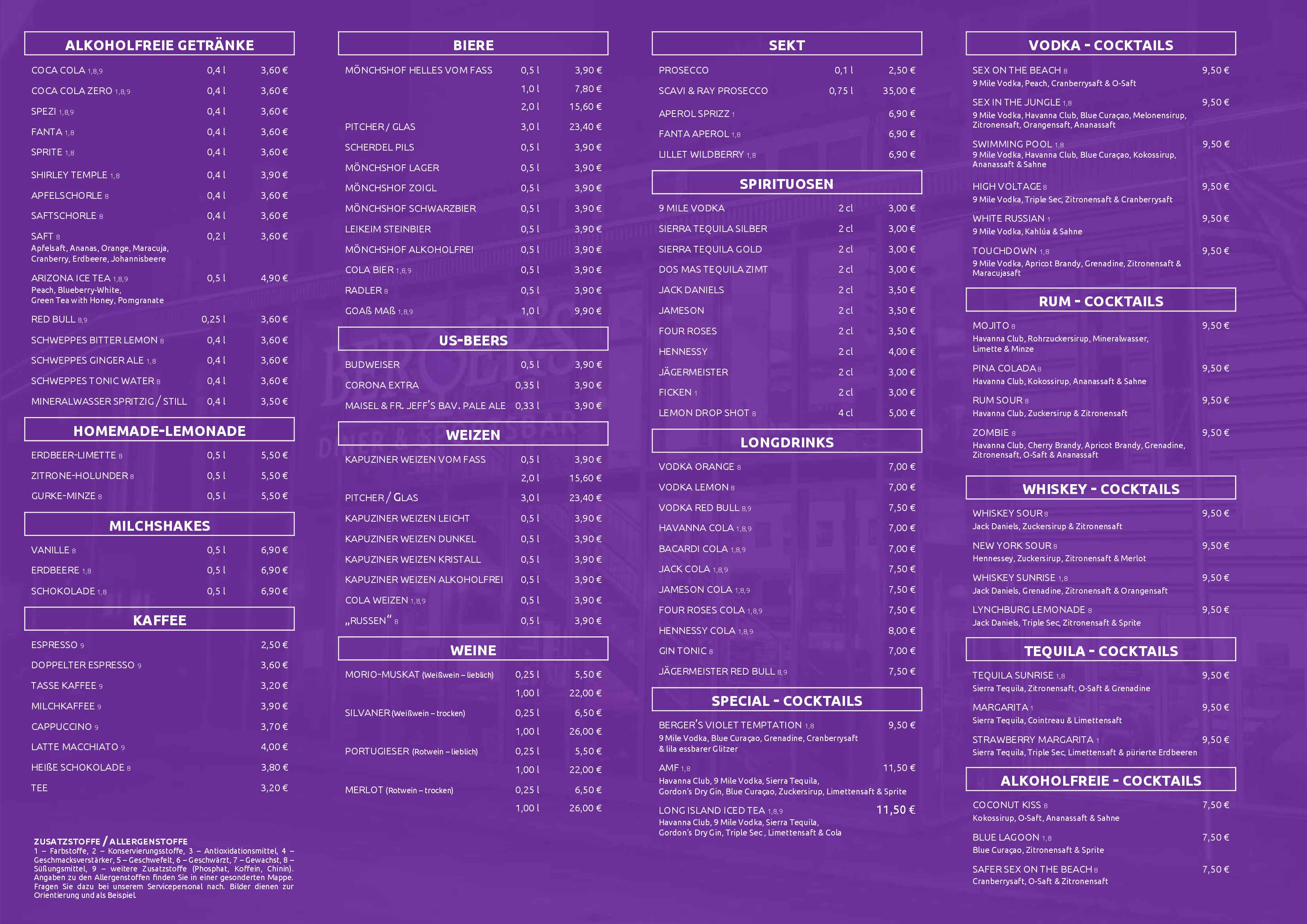 Lounge / Cocktailbar / Sportsbar / Live Sport / Live Veranstaltungen / Restaurant / Lieferservice
